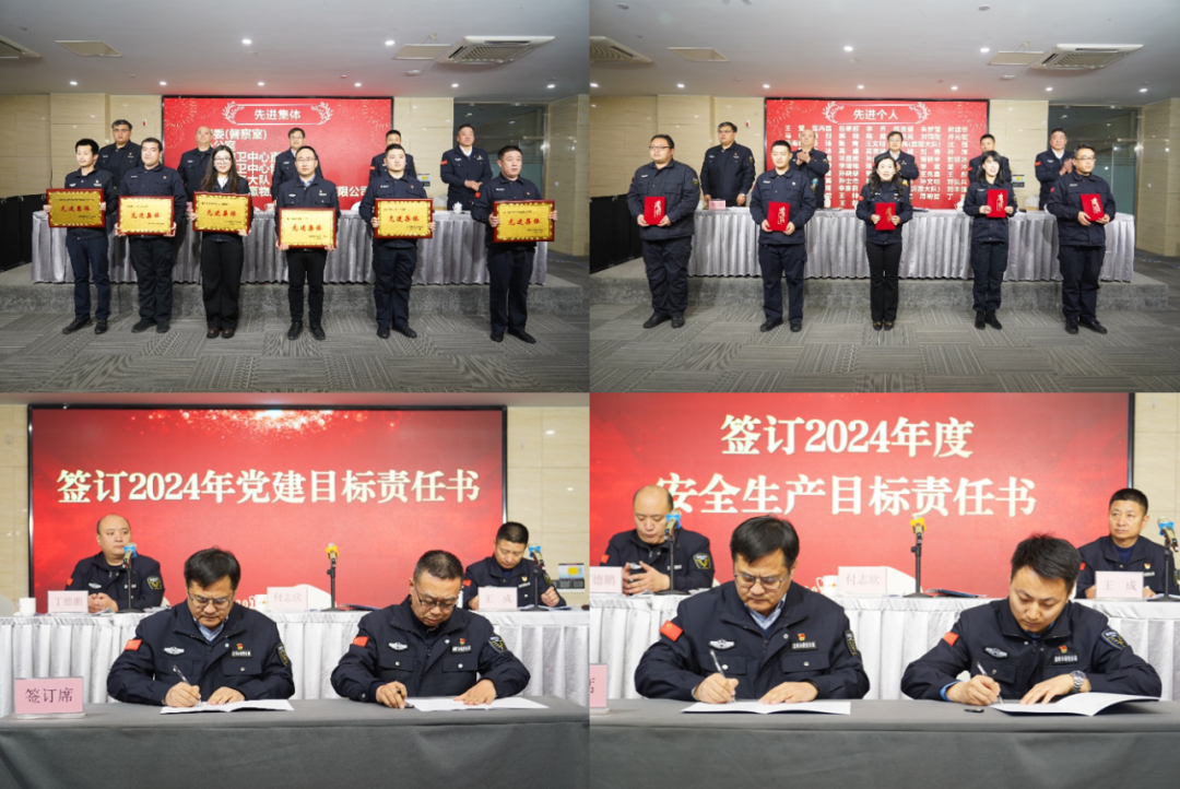 會(huì)上宣讀了《關(guān)于表彰2023年度先進(jìn)集體和先進(jìn)個(gè)人的通報(bào)》和《關(guān)于表彰2023年度優(yōu)秀共產(chǎn)黨員、優(yōu)秀黨務(wù)工作者和先進(jìn)黨支部的通報(bào)》。公司領(lǐng)導(dǎo)為獲得表彰的集體和個(gè)人代表頒獎(jiǎng),并與相關(guān)人員簽訂2024年度黨建目標(biāo)責(zé)任書(shū)、安全生產(chǎn)目標(biāo)責(zé)任書(shū)、持槍人員規(guī)范用槍承諾書(shū)黨風(fēng)廉政建設(shè)目標(biāo)責(zé)任書(shū)。