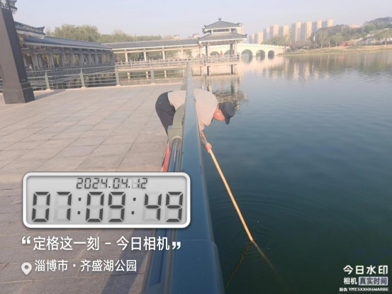 4月11日夜間20時26分,齊盛湖公園游客溫女士非常著急地走進齊盛湖安保項目辦公室求助:“你好,我的手機掉落到湖里了,請你們幫我找找!”值班副經理張振海一邊安撫溫女士的情緒,一邊詢問手機遺落水域區(qū)域,確認后立即組織保安隊員打著手電,用打撈桿進行尋找。
