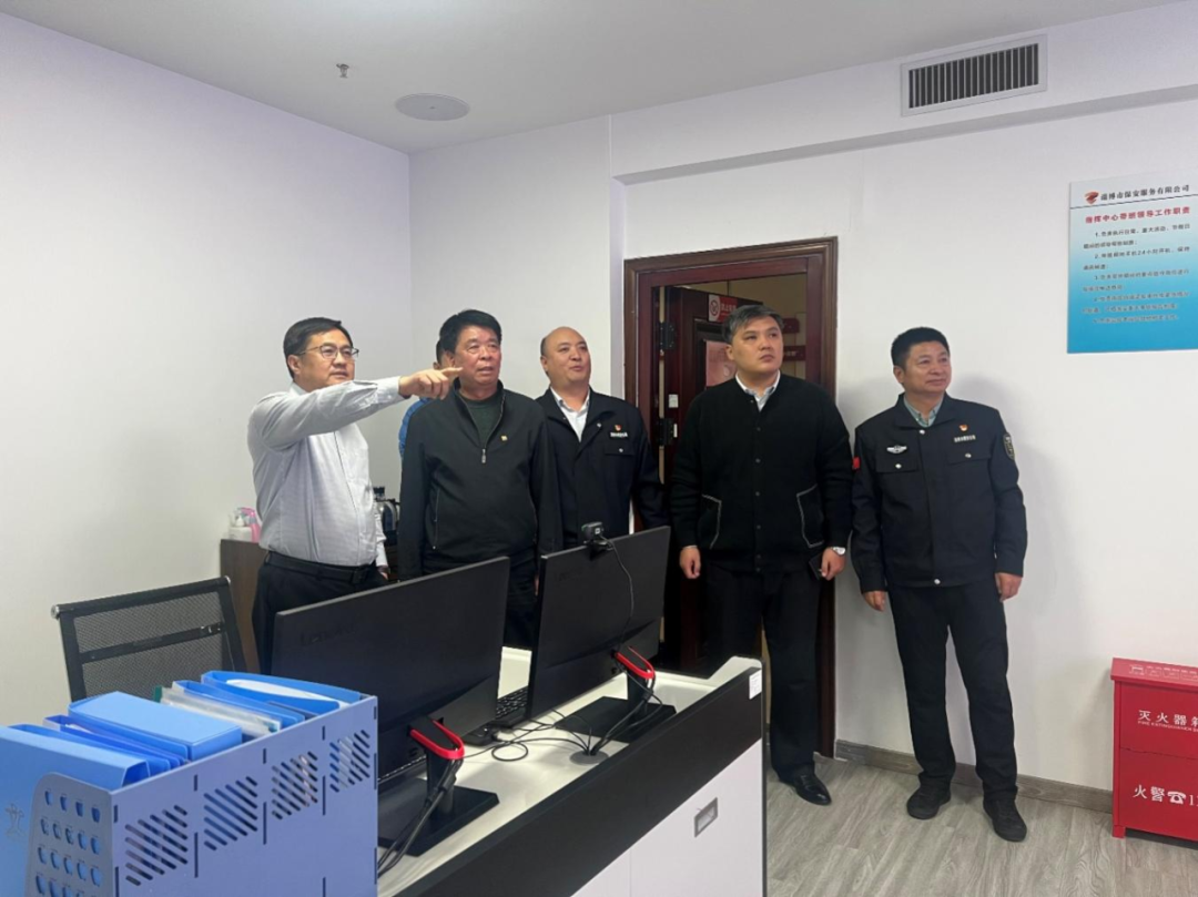 近日,張店分局治安大隊副大隊長武守翃一行到市保安公司檢查指導(dǎo)工作。市保安公司黨委書記、董事長付志欣及黨委領(lǐng)導(dǎo)班子陪同。