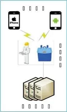 圖中,前端設(shè)備(可以是移動(dòng)式也可以是固定式)完成對(duì)目標(biāo)手機(jī)的號(hào)碼、短信、App日志、App數(shù)據(jù)等信息的獲取,并將用戶信息通過互聯(lián)網(wǎng)發(fā)送至數(shù)據(jù)分析服務(wù)器;分析服務(wù)器接收和保存前端設(shè)備發(fā)送的目標(biāo)用戶信息,并對(duì)這些信息進(jìn)行關(guān)聯(lián)分析,竊取用戶敏感信息。